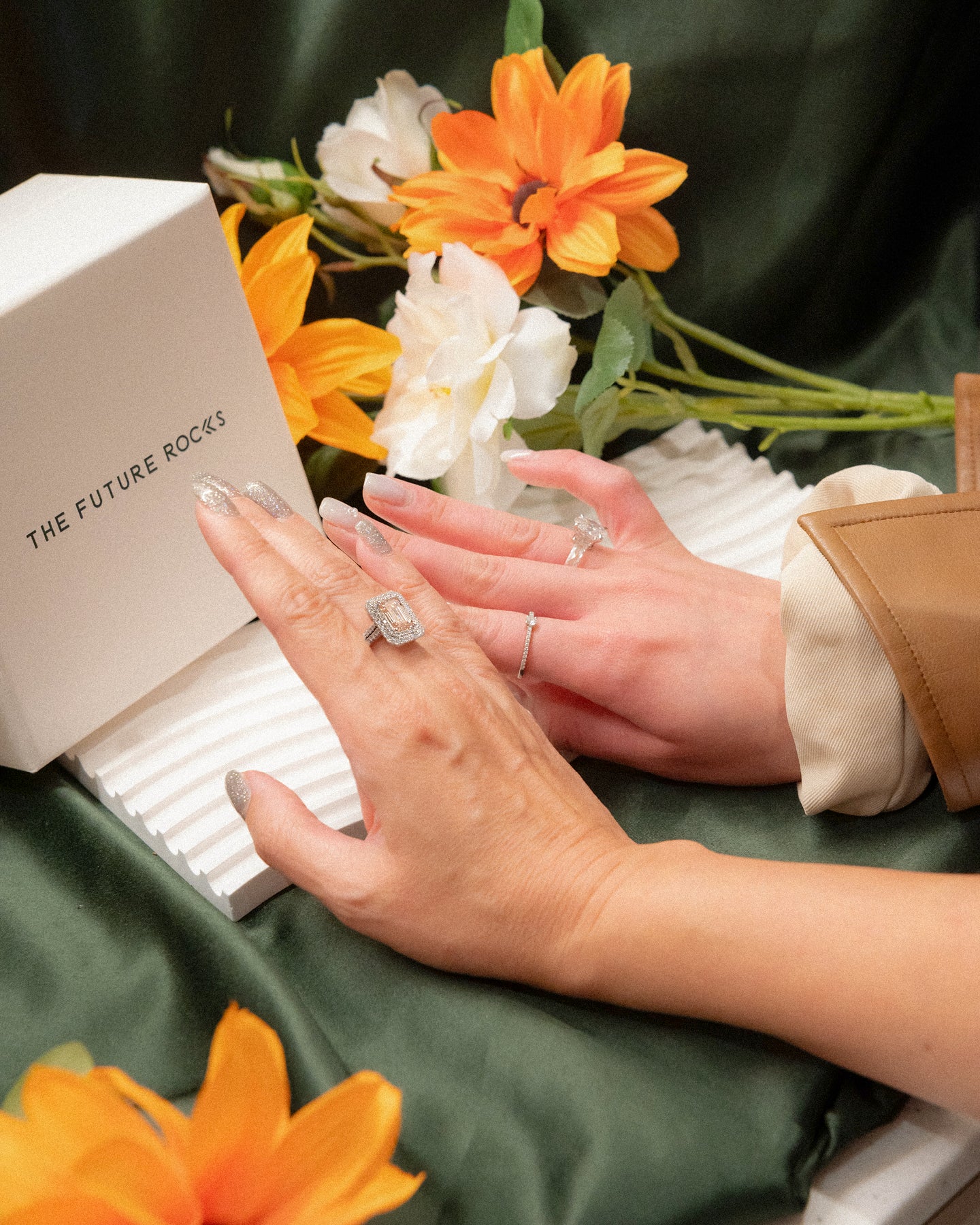 Subscribe to our newsletter and share your experience wearing THE FUTURE ROCKS jewelry on your social media to receive two complimentary lab-grown white diamonds, totaling 0.1 carats (0.05 carats each), perfect for dazzling your nails!