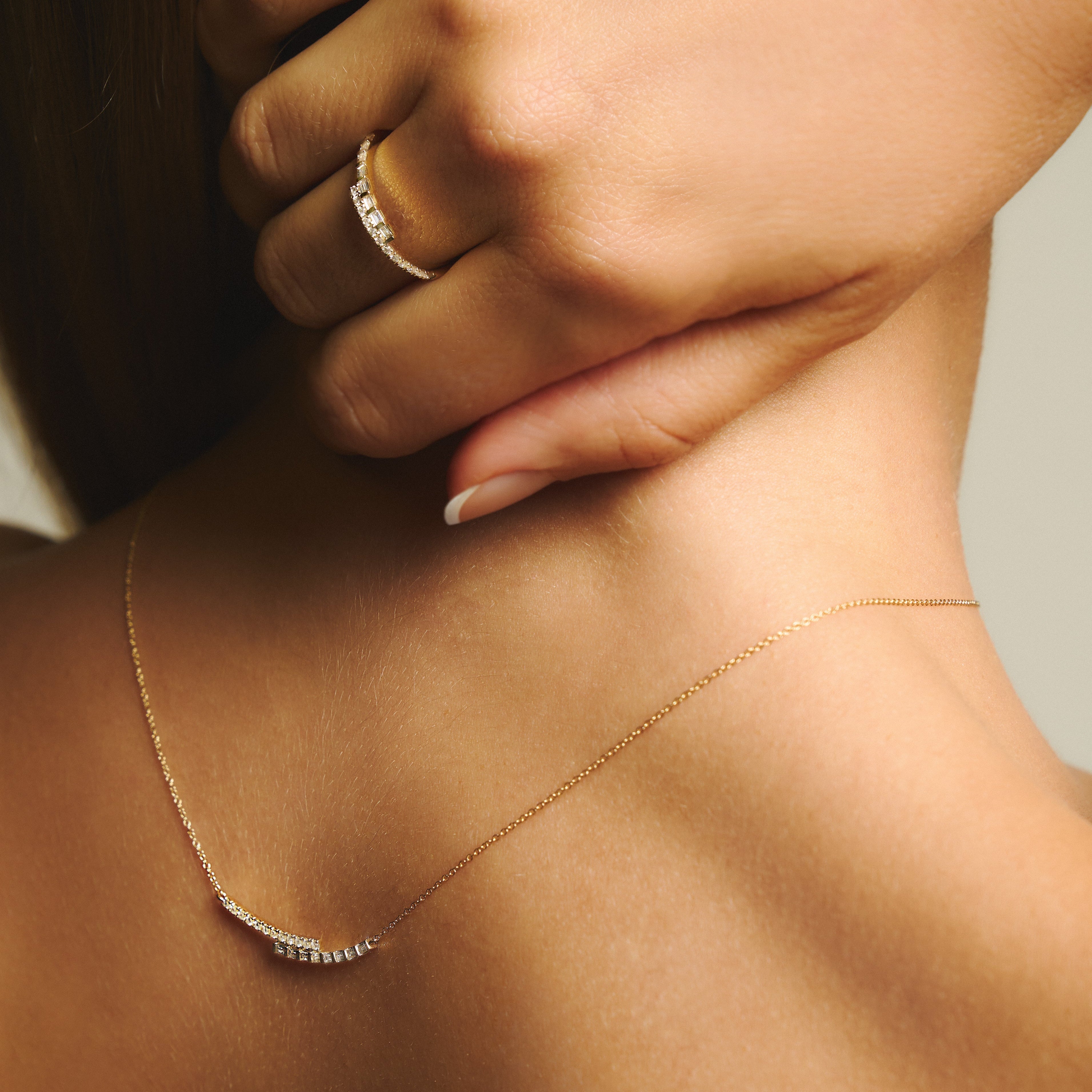 Design Lab’s Ballerina collection is about the delicate power in both the intricacy of the ballet and the powerful strength of balance and precision. The jewelry reflects bold elegance, unique angles and glittering Lab-grown diamonds.