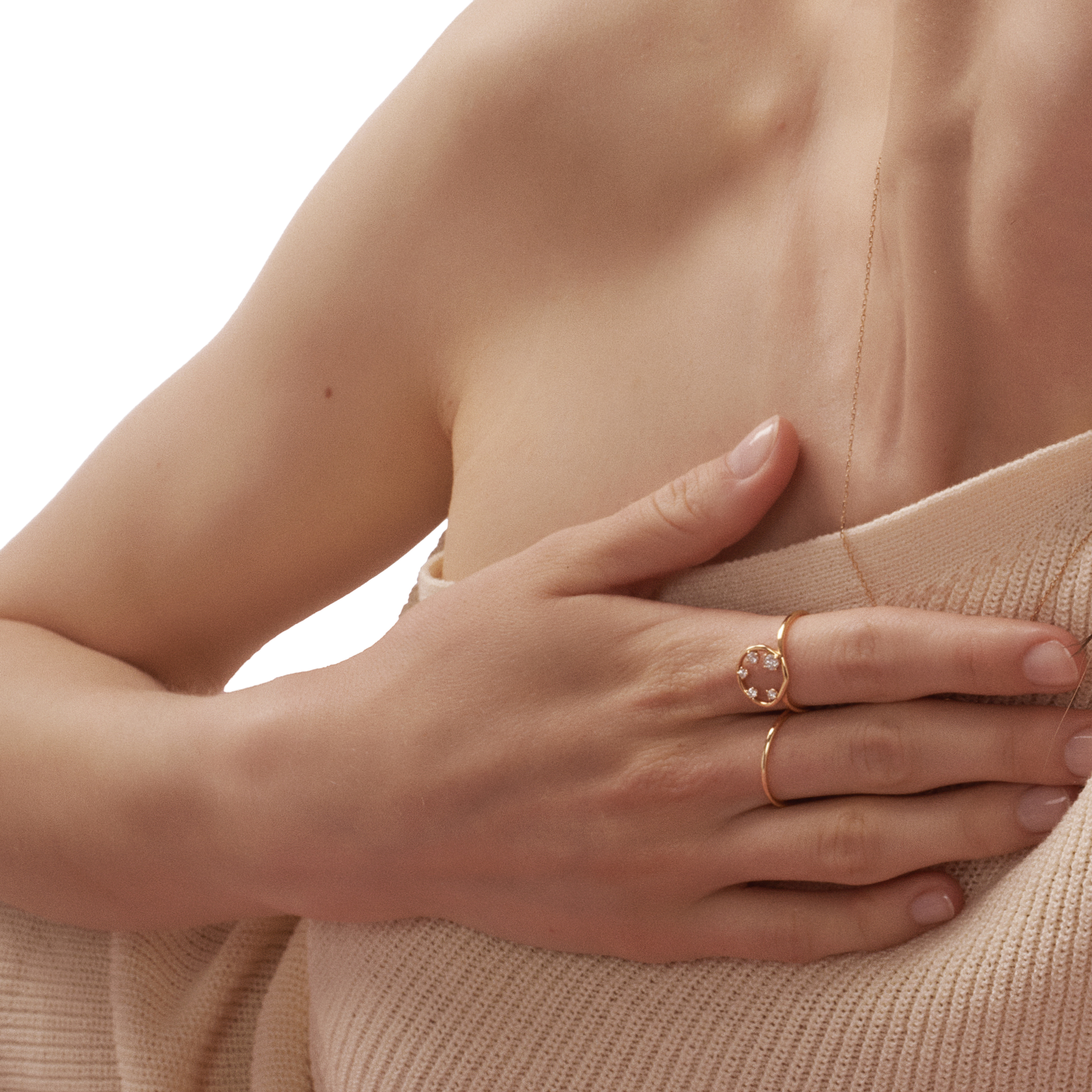 耐久性とケア: 18K gold balances the highest level of durability with value and is less prone to scratches and wear. It is recommended to polish your piece every 2–3 years to restore high polish.