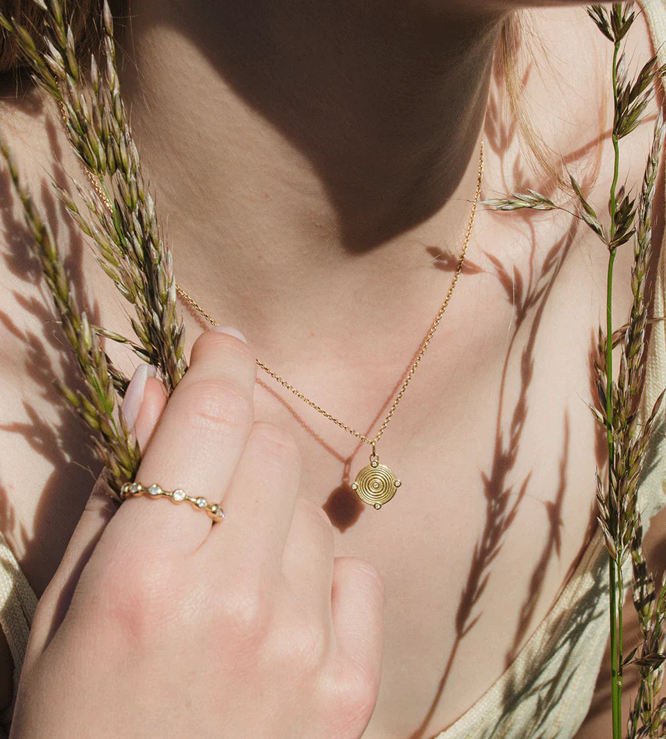 Creating designs that will effortlessly find their place in your style story, this circular recycled 18K yellow gold design is dotted with five gleaming lab-grown diamonds and suspended from a fine chain.