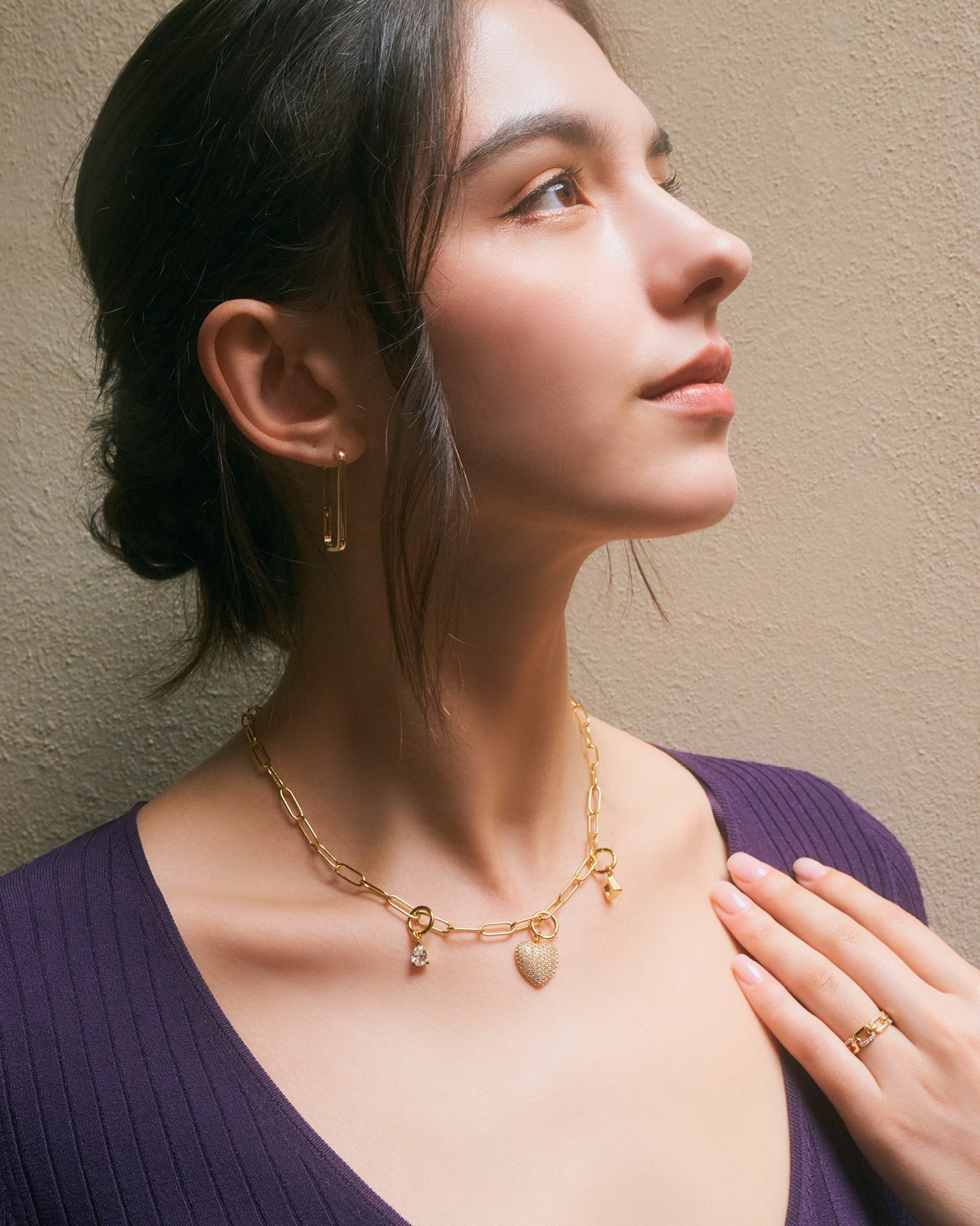 総カラット重量: Nyx charm (Round) 1.3ct/ Clio charm (Marquise) 0.64ct/ Astra charm (Trillion) 0.84ct/ Perse charm (Pear) 1.3ct
